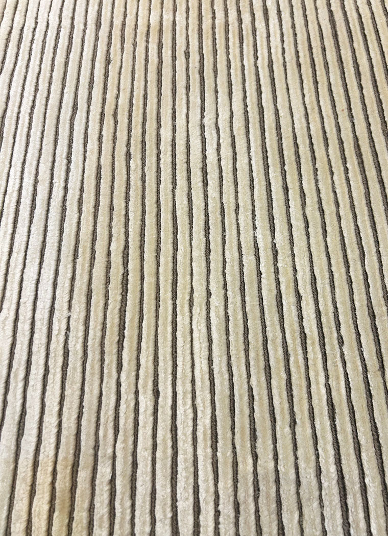 The combination of premium wool and fine silk gives the rug a plush, velvety feel underfoot while enhancing the texture and depth of its minimalist striped